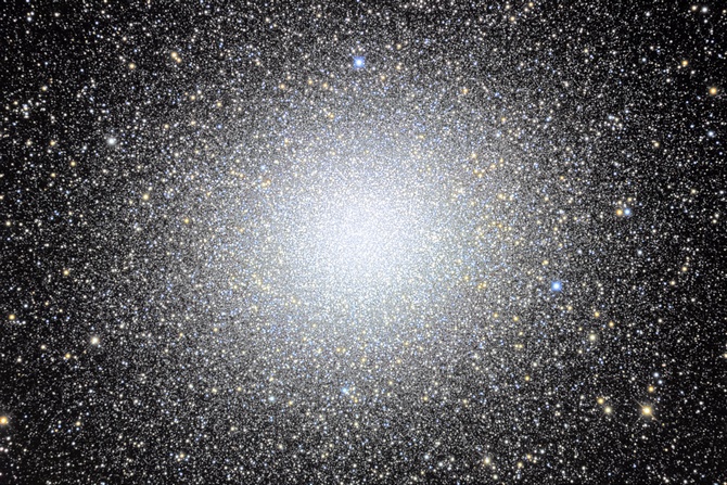 Harrington writes that this "magnificent 3.7 mag globular is visible to the naked eye. And what a marvelous sight it is. A pair of 7-power binoculars begins to reveal the unparalelleled splendor of Omega Centauri. Observers with exceptional eyesight may just perceive some of the globulars estimated one million stars, but 11x80 glasses will reveal scores ... an 8-inch instrument can resolve stars across nearly all of the clusters half degree disk. Through a 25-inch reflector, I once cracked the core of Omega, seeing countless suns pouring across the field!"