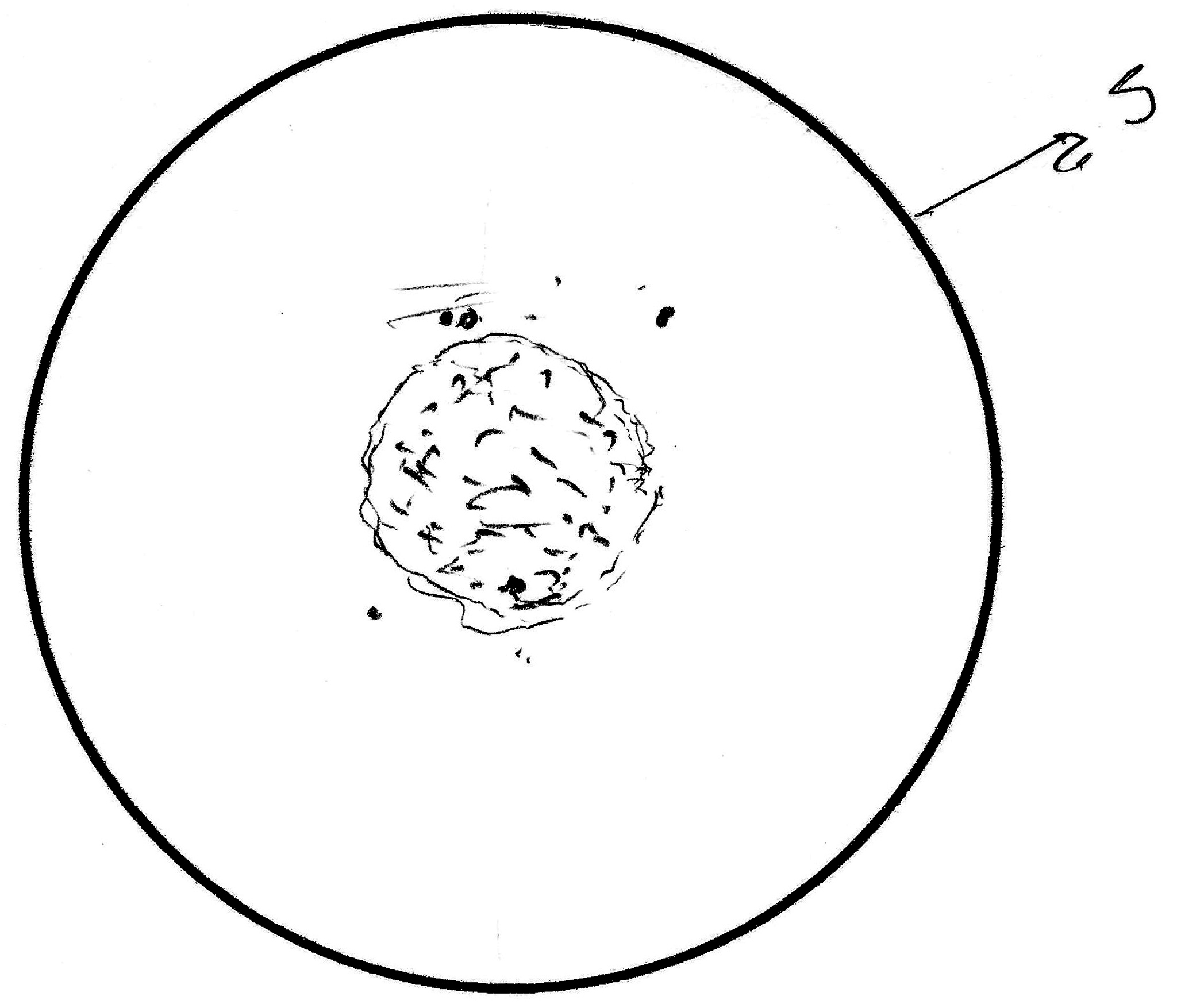 8cm - lg oval w/broadly brtr center @ 20x. just gran, vfine grained. consp *s on N and W edges, sev others fntr/farther away. BS, 18Apr1983, Anderson Mesa.