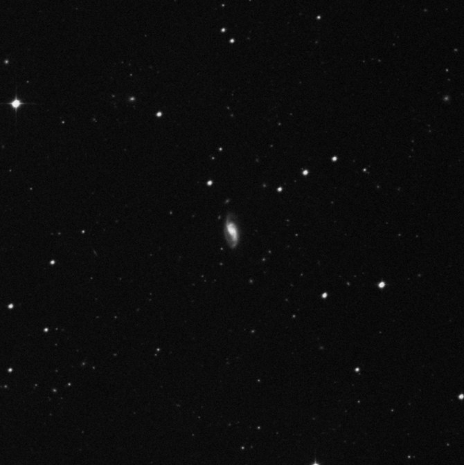 The RNGC (Sulentic and Tifft 1973) notes that this is a 14.0 mag galaxy. Their coded description reads S,EL,DKLNS,BM,PD.