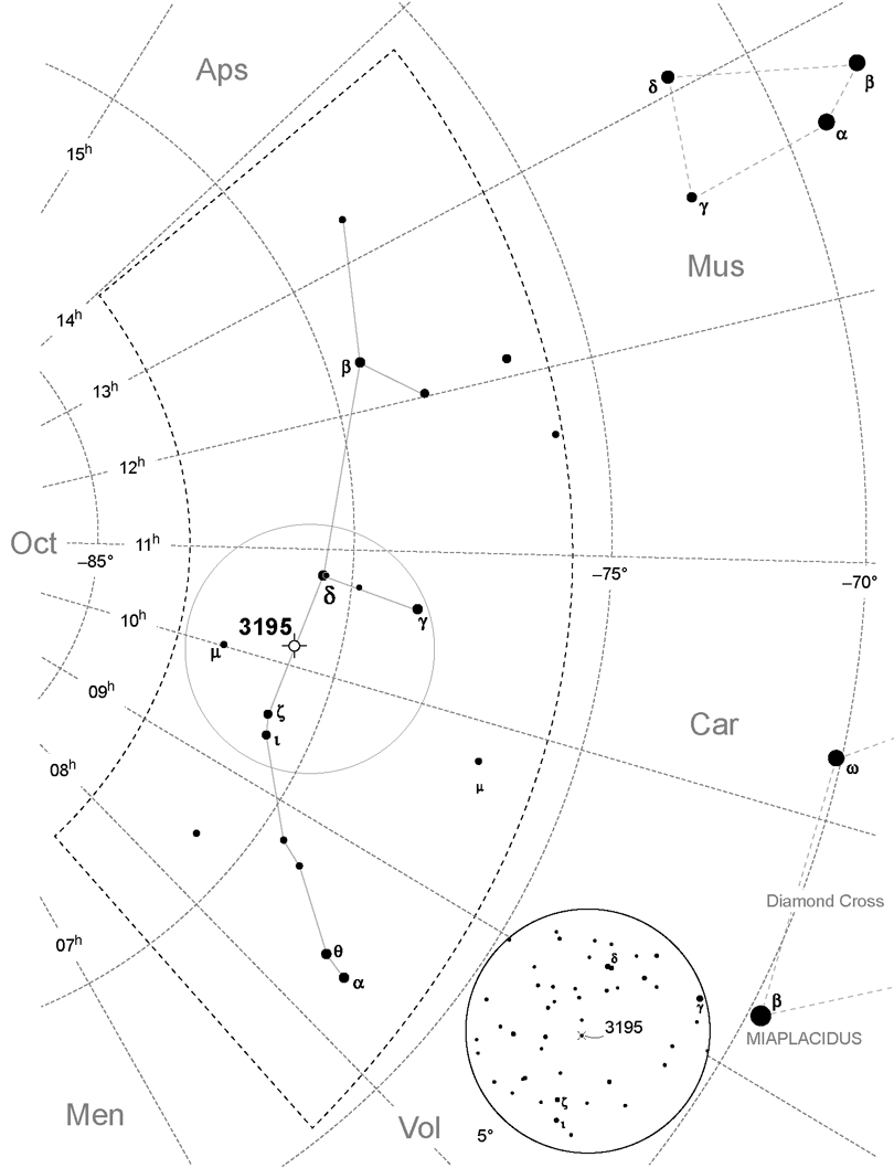 One of the twelve southern constellations created by Dutch navigators Pieter Dirkszoon Keyser & Frederick de Houtman, drawn by Dutch cartographer Petrus Plancius (1597); 79th largest; 31 naked-eye stars.